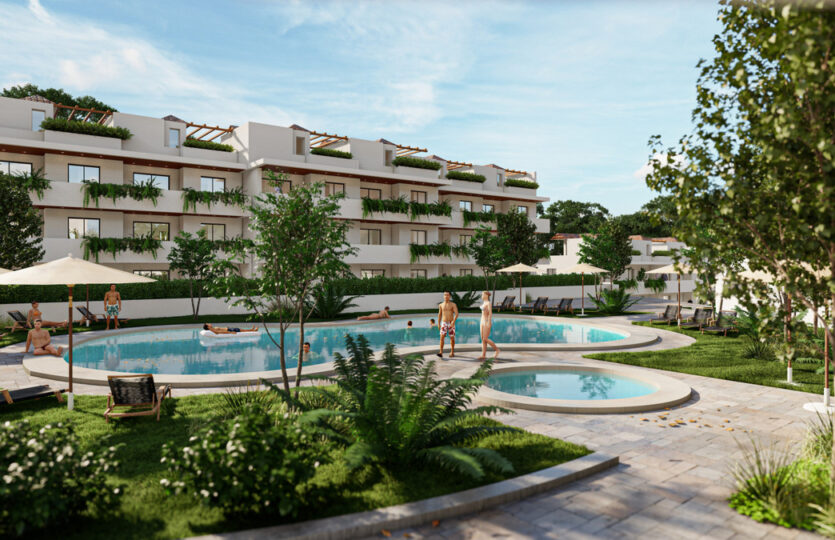 Ke každému bytu náleží vlastní parkovací místo, které je již zahrnuto v ceně. Součástí komplexu jsou krásně upravené společné zahrady a bazény se slanou vodou pro dospělé i děti, které zajišťují komfortní prostředí pro celou rodinu.